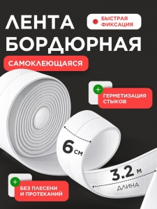 Многофункциональная высокопрочная клейкая лента -хорошее средство для герметизации и гидроизоляции швов, защиты от протечек и появления налета, борьбы с появлением грибка и плесени. Самоклеющаяся лента предназначена для монтажа и декорирования на стыках ванны, душевой кабинки или раковины и стены, полов. Белую декоративную одностороннюю клейкую ленту можно использовать при монтаже окон для декорирования откосов, подоконника.