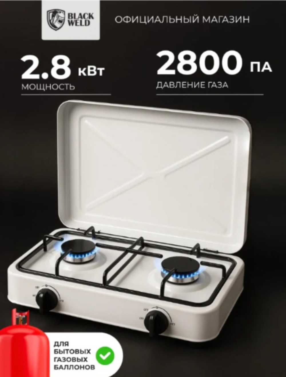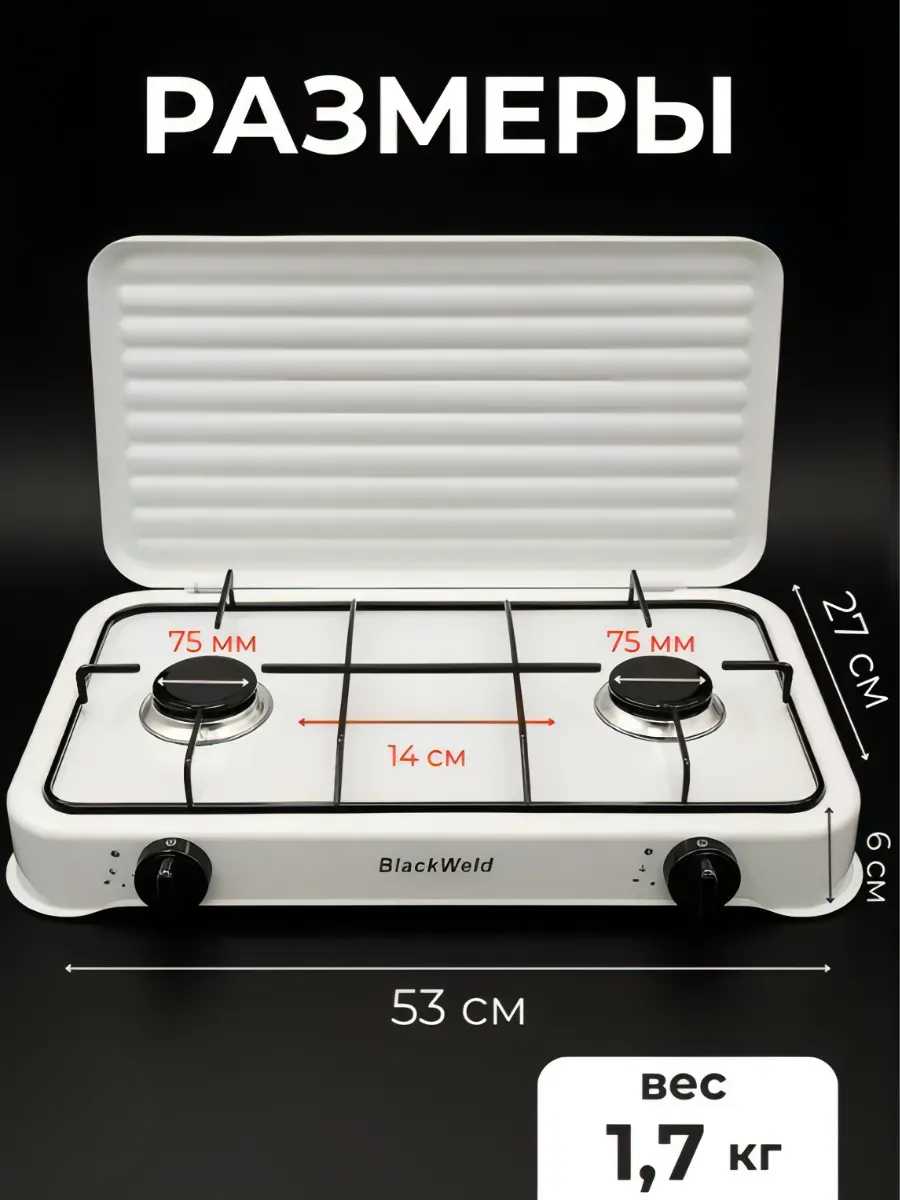 Плита газовая настольная двухконфорочная белая BlackWeld 150221 предназначена для удобного приготовления пищи в условиях, где требуется мобильное и компактное решение.