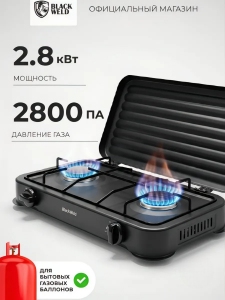 Плита газовая настольная двухконфорочная черная BlackWeld 150222 предназначена для удобного приготовления пищи в условиях, где требуется мобильное и компактное решение. Этот прибор работает от газового баллона, что обеспечивает автономность и простоту использования вне стационарной кухни. Плитка легко помещается на столе или другой ровной поверхности, позволяя быстро разогревать и готовить разнообразные блюда.