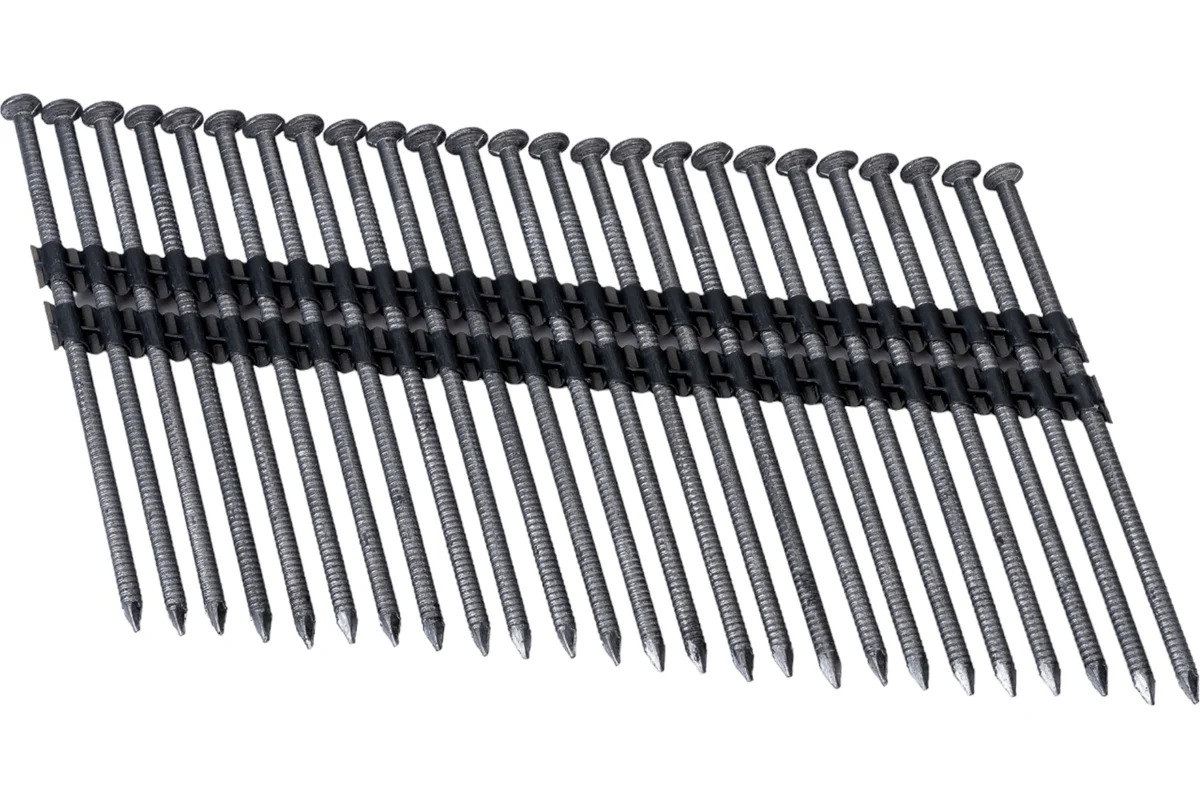 Гвозди реечные Pegas 21 градус кольцевая накатка уп. 3000 шт. 3,1x90mm Pegas pneumatic 1266 используются с реечным гвоздезабивным пистолетом при выполнении следующих работ: обрешетка, крепление деревянных панелей, в каркасном домостроении, внутренняя отделка помещений, производство деревянных поддонов, гвозди соединены пластиковым креплением, что позволяет быстро зарядить пистолет.