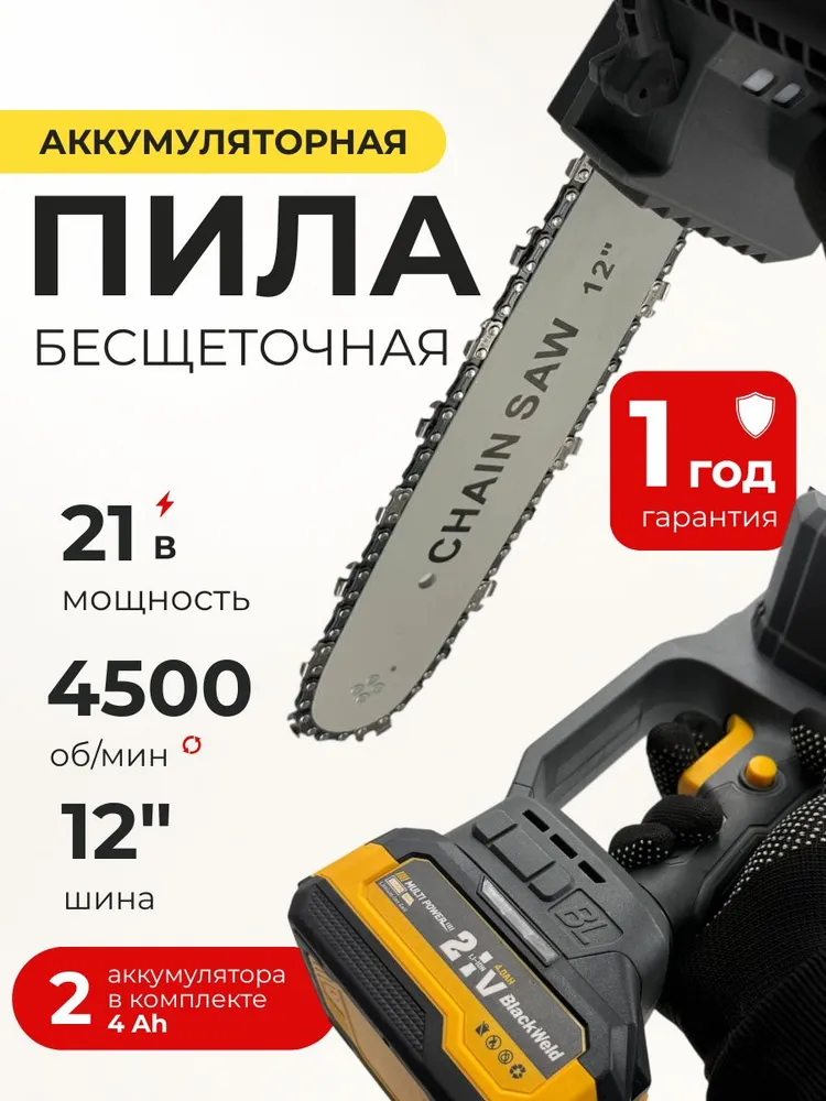 Бесщеточная цепная пила 21V 4.0Ah BlackWeld 150250 - это незаменимый помощник в саду и на приусадебном участке. С ее помощью вы сможете быстро и без лишних усилий справиться с обрезкой деревьев, кустов и других зеленых насаждений. Основное преимущество данной модели - это ее аккумуляторная система. Это значит, что вам не придется тратить время и силы на подключение к сети. Вы сможете работать в любом месте, где есть источник питания. Бесщеточный двигатель обеспечивает высокую производительность и долгий срок службы. Он не требует обслуживания и не создает лишнего шума, что делает работу с пилой более комфортной. Цепная пила оснащена аккумулятором напряжением 21V. Это обеспечивает достаточную мощность для выполнения большинства садовых работ. Благодаря компактным размерам и небольшому весу, пила легко транспортируется и хранится. В комплекте с пилой вы получаете цепь и аккумулятор. Это позволяет сразу приступить к работе и не тратить время на поиск дополнительных аксессуаров. Выбирая аккумуляторную цепную пилу BlackWeld, вы получаете надежный и удобный инструмент для ухода за садом и приусадебным участком.