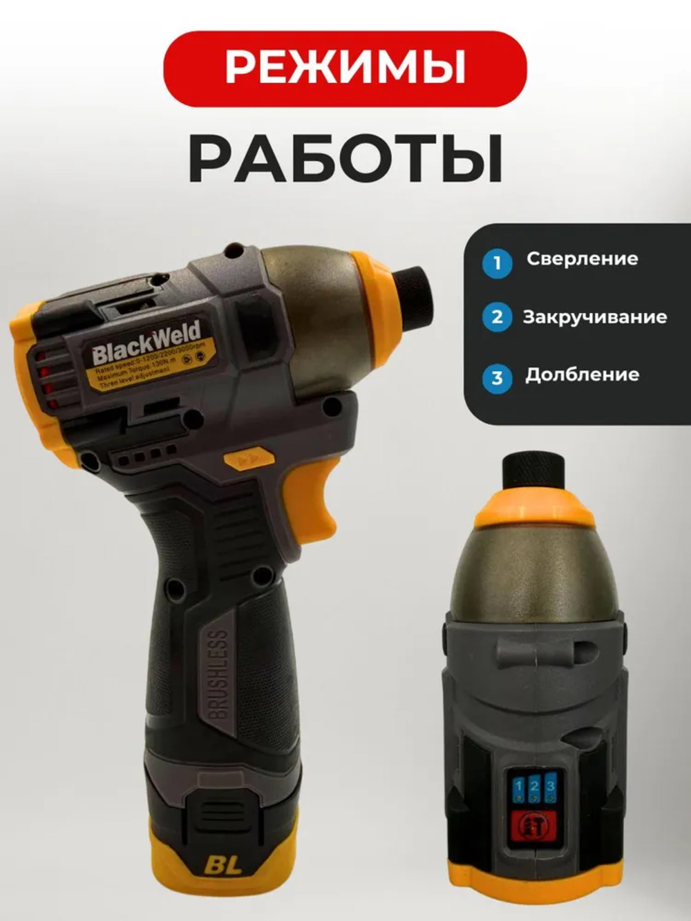 Режимы работы - Завинчивание, Завинчивание с ударом, Сверление