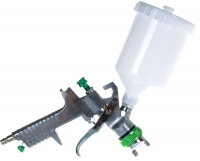 Краскопульт пневматический является самым популярным видом и чаще всего применяется в профессиональных целях. Он используется для равномерного нанесения средств на поверхности. От выбора инструмента зависит, например, качество покраски машины. К пневмо инструменту подсоединяется компрессор при помощи специального компрессорного шланга. Также в инструмент входит контейнер для краски, ионическая насадка и уплотнительная игла. Контейнер (бачок) для краски может быть расположен вверху или внизу.