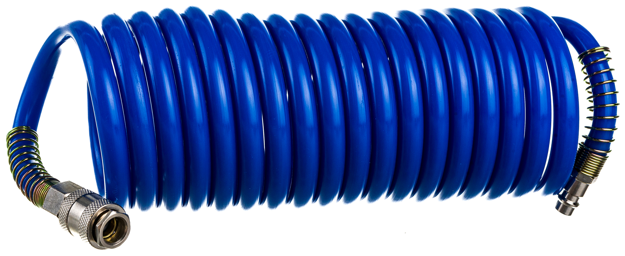 Шланг Pegas витой с быстросъемными соединениями 1/4" обеспечивает стабильное поступление сжатого воздуха от компрессора к инструменту. Модель не разрушается под воздействием бензина, масла, растворителя, а также не теряет своих свойств при пониженной и повышенной температуре воздуха.