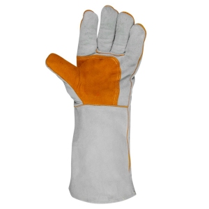 Краги спилковые Серые с оранжевой подкладкой подойдут для работы со сваркой металлов.
